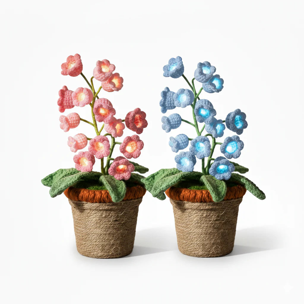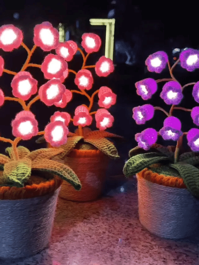 Oui ! Chaque pot est fabriqué à la main avec du fil au crochet et contient une douce lumière LED à l’intérieur des pétales.
